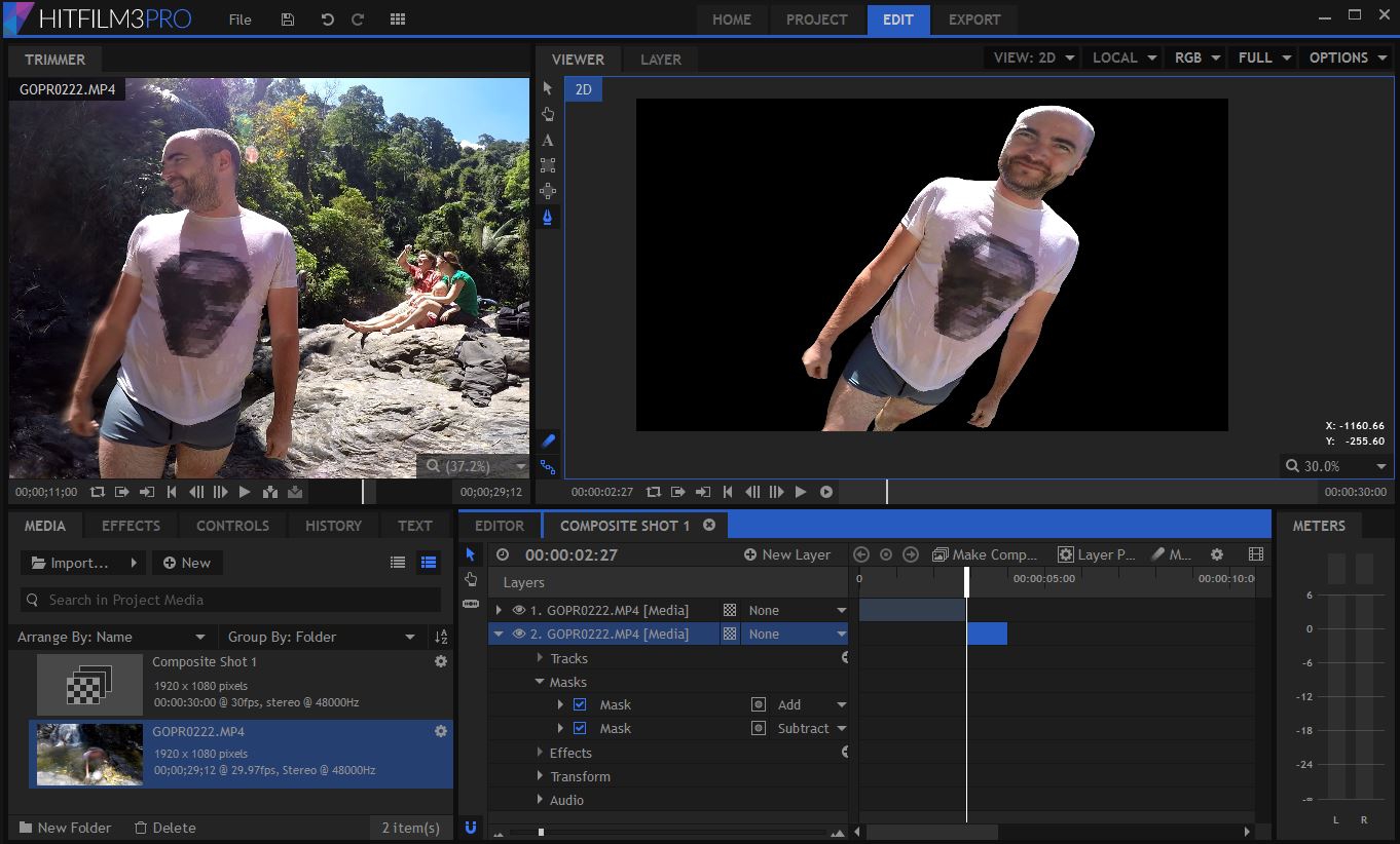 Hitfilm Express (โปรแกรม ตัดต่อวิดีโอขั้นเทพ สำหรับ PC ใช้งานฟรี) : สำหรับเจ้าตัวนี้ มีนามว่า โปรแกรม Hitfilm Express มันเป็น โปรแกรมตัดต่อวิดีโอ ที่มีความสามารถหลักๆ ที่ครบเครื่องเรื่องตัดต่อ แก้ไข (Editor) และการใส่ VFX (Visual Effects) แบบ 2 มิติ และ 3 มิติ ลงบนวิดีโอประเภทต่างๆ มันมาจากทีมผู้พัฒนา FXhome ที่เปิดให้ผู้ใช้งานสามารถดาวน์โหลดกันได้แบบฟรีๆ โดยมีการจำกัดบางฟีเจอร์ไว้ แต่ก็ไม่ได้ส่งผลกระทบต่อการใช้งานแต่อย่างใด แต่หากใครใช้แล้วชอบใจสามารถอัพเกรดเป็นเวอร์ชัน Pro เพื่อรับฟีเจอร์พิเศษเพิ่มเติมได้