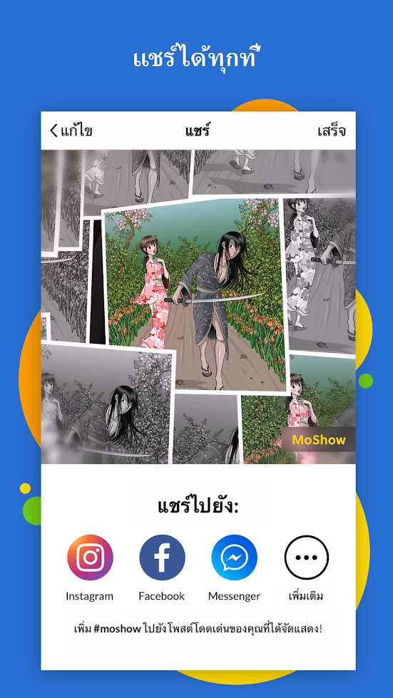 Application Features (คุณสมบัติหรือความสามารถของแอปพลิเคชัน สร้างวิดีโอเจ๋งๆ จากภาพเซลฟี่ MoShow เพิ่มเติม)