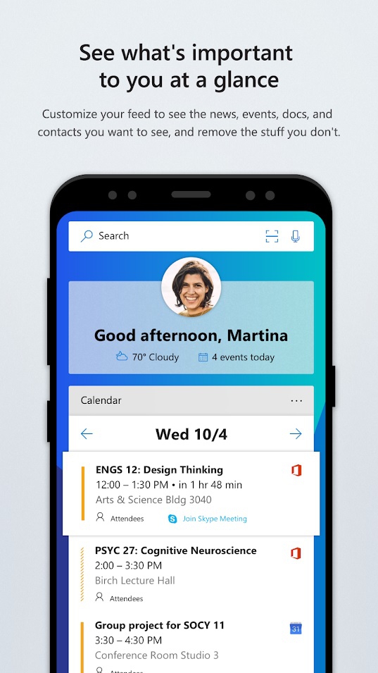 This app is called "Microsoft Launcher". With Microsoft Launcher (formerly known as Arrow Launcher), you can personalize your Android device to match your style with wallpapers, theme colors, icon packs and more. You can access your calendar, documents, and recent activities in your personalized feed.
