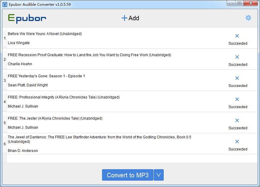 With the help of Epubor Audible Converter, you can easily convert any DRM-protected audiobooks from Audible, including AA, AAX to DRM-free audio formats, like MP3, M4B, AC3, M4A and FLAC that are supported by most popular media playing devices, such as iPod, Kindle, Sony Walkman, iRiver, etc and other iOS, Android mobile phones or tablets.