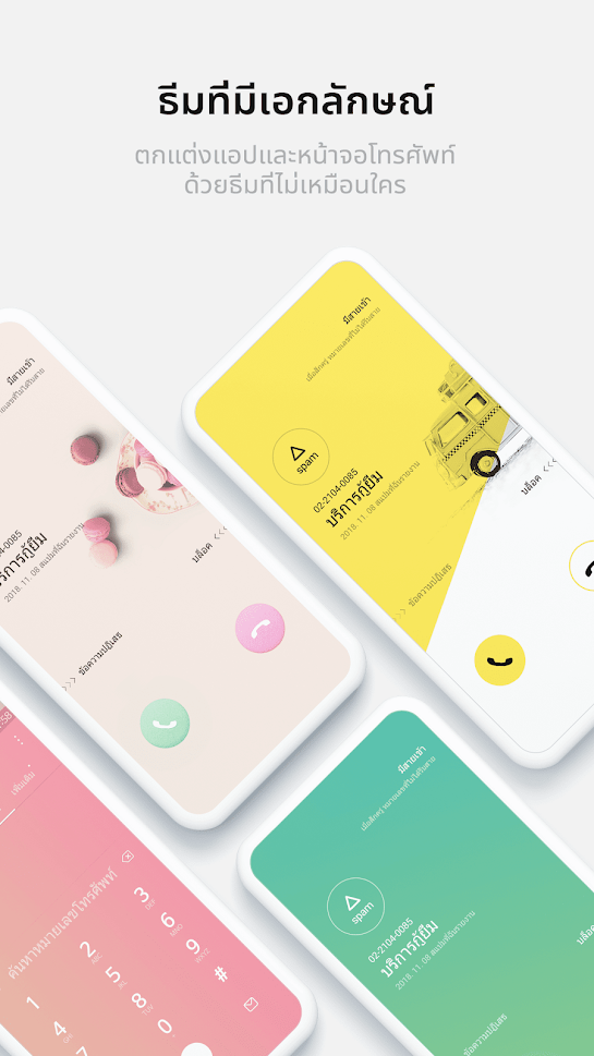 สามารถตกแต่งหน้าจอสายเรียกเข้าให้สวยงาม รวมถึงหน้าจอข้อความ และปรับเปลี่ยนพื้นหลังแอปฯ ด้วยธีมที่คุณชื่นชอบ