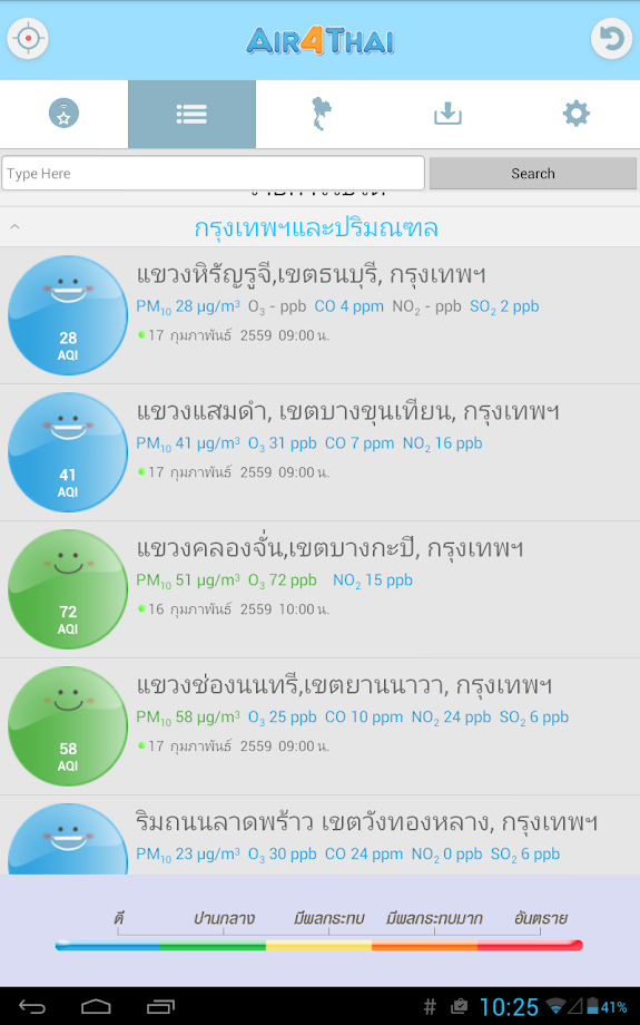 รูปตัวอย่าง Screenshot การใช้งานจริงของ App ตรวจสอบปริมาณฝุ่นควัน ในกรุงเทพ และทั่วประเทศ Air4Thai