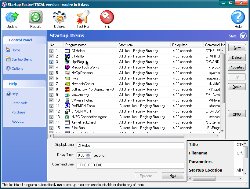 ความสามารถหลัก (Key Features) ของ โปรแกรมเร่งความเร็วคอมพิวเตอร์ Startup Faster ก็คือ ใช้บริหารจัดการและตั้งค่า การเรียกใช้โปรแกรมอัตโนมัติ (Autorun Program) ตอนเริ่มต้นระบบ (Windows Startup) และทดสอบให้เหลือเพียงบางรายการที่จำเป็นต้องใช้เท่านั้น ส่งผลให้ใช้เวลาในการตระเตรียมความพร้อมตอนเริ่มต้นระบบน้อยลง หรือเรียกง่ายๆ ว่า ช่วยให้ตอนเปิดคอมฯ กลับมารวดเร็วดังเก่า คล้ายกับตอนที่เพิ่งจะติดตั้งระบบปฏิบัติการใหม่ๆ ก็ไม่ปาน