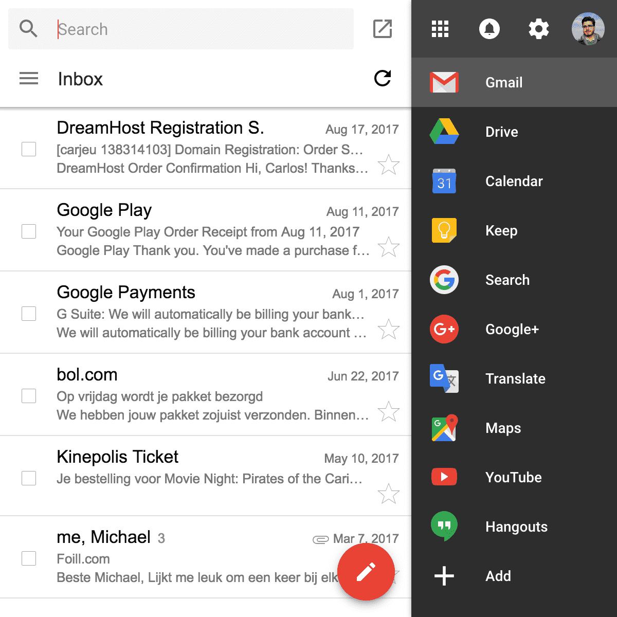 This program is called "Black Menu"., It is a Browser extension that takes all the best apps and services of Google and combines them into one single, convenient experience that's always just a click away. Principles and specifications of Material Design have been applied