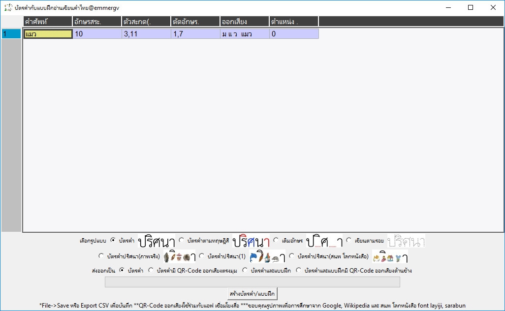 โดยตัวโปรแกรมจะทำการสร้างไฟล์รูปภาพให้เรามา เราสามารถนำไฟล์นั้นไปพิมพ์ใส่ A4 ด้วยเครื่องปริ้นเตอร์ เพื่อทำเป็นการ์ดคำศัพท์ให้น้องๆ หนูๆ ฝึกอ่าน ฝึกเขียน ฝึกจดจำได้เลย