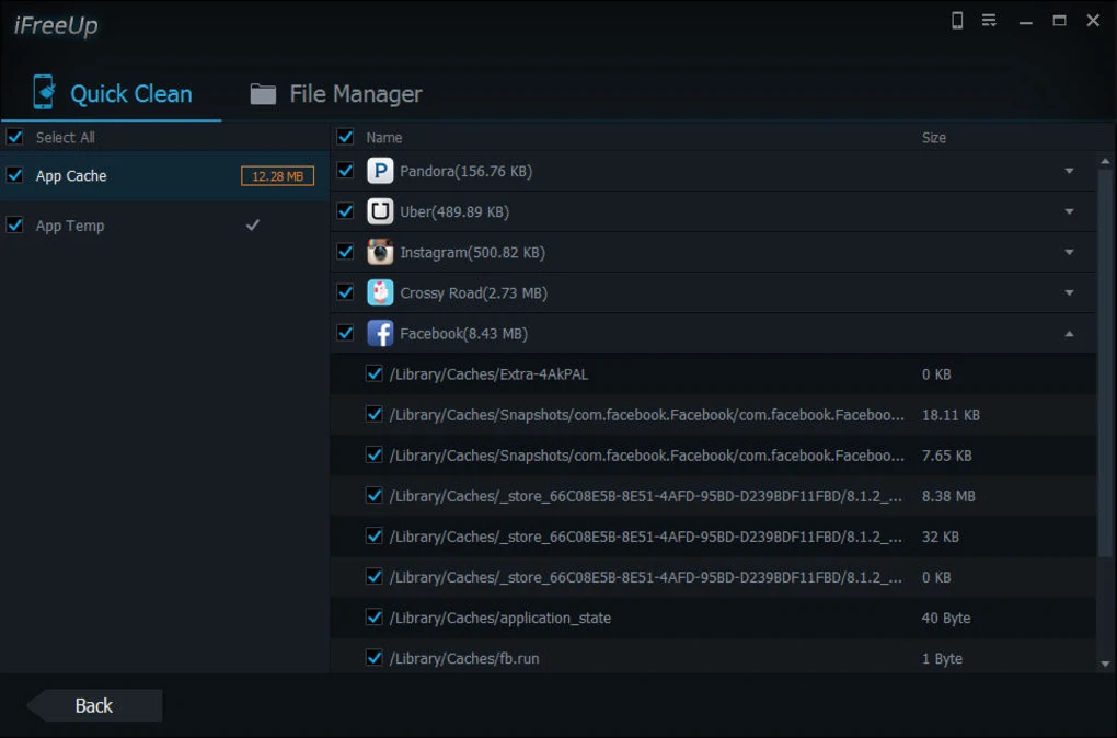 หน้าตาการใช้งาน (User Interface) ของโปรแกรมลบไฟล์ขยะ IObit iFreeUp ก็ออกแบบมาให้ดูง่าย เรียบร้อย เป็มมิตรต่อผู้ใช้งานทุกคน ด้วยการใส่ปุ่มมาให้น้อยมาก และมีหน้าเมนูใช้งานเพียงแค่ 2 หน้าเท่านั้นคือ Quick Clean (ทำความสะอาดระบบฯ) และ File Manager (จัดการไฟล์)