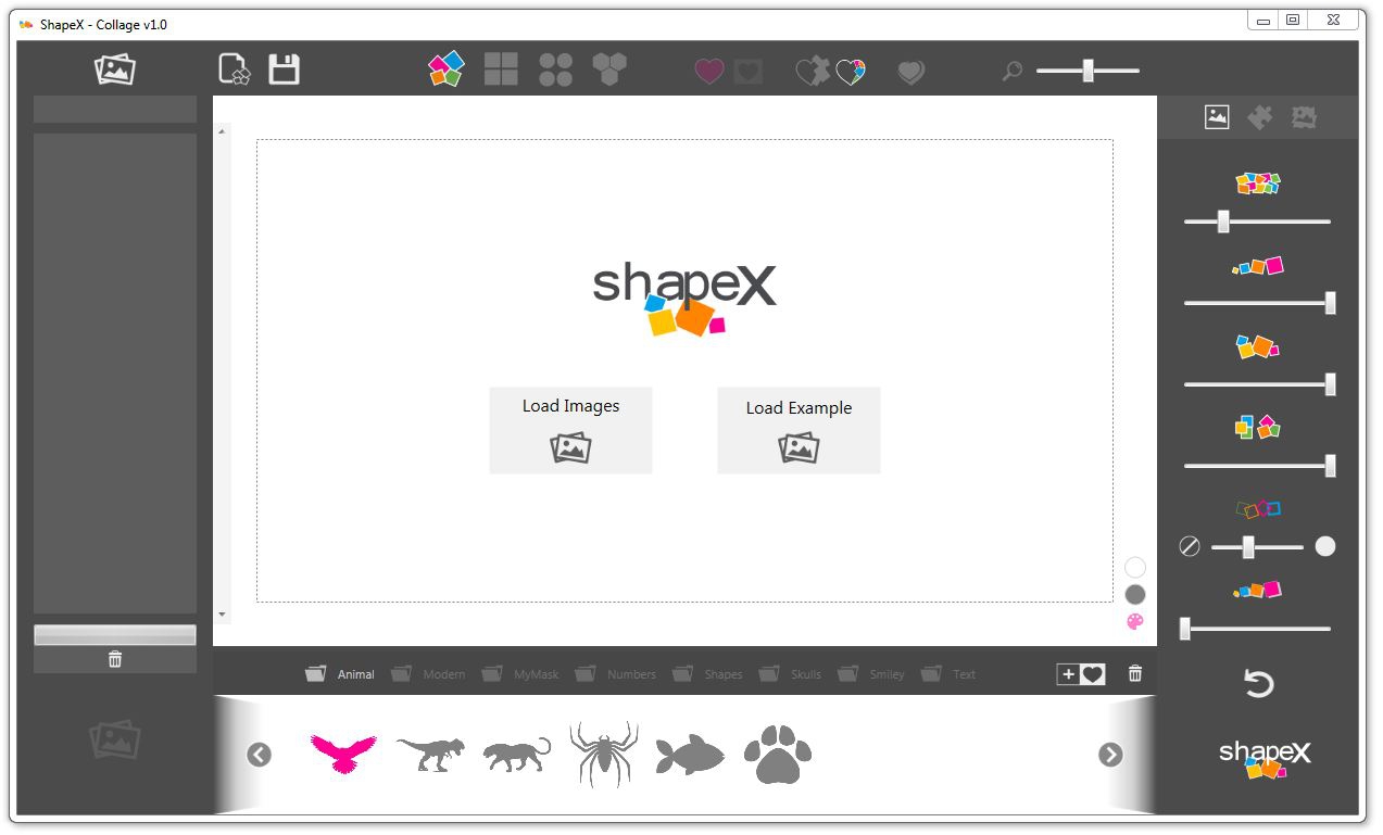 โดยโปรแกรมรวมรูปภาพ ShapeX มีความสามารถหลักในการ รวมรูปภาพ (Collage) หลายๆ รูปให้เป็นรูปเดียว แล้วเลือกรูปร่าง (Shape) ได้ตามต้องการ เช่น รวมรูปภาพ 50 รูปให้เป็นสัตว์ รูปสิ่งของ รูปโลโก้ หรือจะใส่เป็นรูปร่างตัวอักษรก็ย่อมได้ตามต้องการ มันช่วยสร้างความน่าสนใจให้รูปภาพมากกว่าการรวมรูปแบบปกติ และยังช่วยสื่อความหมายได้ดีอีกด้วย