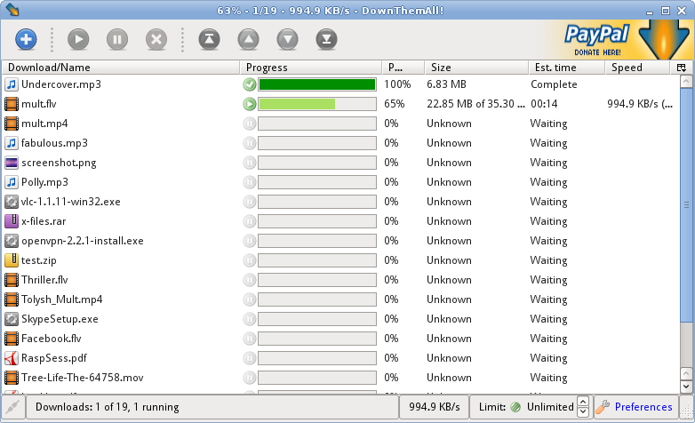 นอกจากนี้แล้วโปรแกรมช่วยดาวน์โหลด DownThemAll ยังรองรับการดาวน์โหลดไฟล์หลากหลายประเภทอีกด้วย จะเป็นไฟล์เสียง ไฟล์เอกสาร ไฟล์วิดีโอ และอื่นๆ ก็ดาวน์โหลดได้หมด ไม่มีปัญหา รวมถึงจัดคิว และกำหนดความเร็วที่ใช้ในการดาวน์โหลดได้อีกด้วย