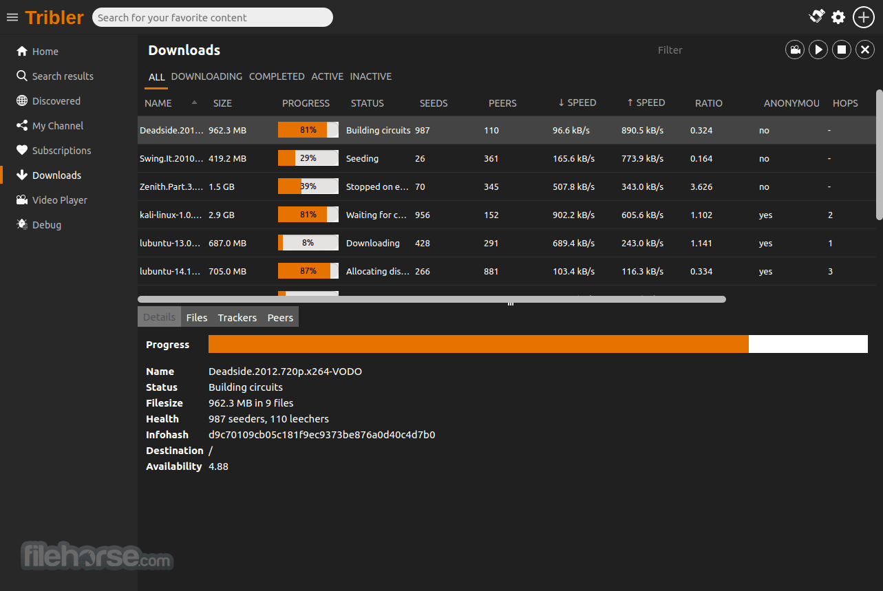 Tribler (โปรแกรม Tribler โหลดบิท Torrent ฟรี) : สำหรับโปรแกรมนี้มีชื่อว่า Tribler เป็นโปรแกรมที่เอาไว้โหลดบิตทอร์เรนต์ ซึ่งเป็นการดาวน์โหลดไฟล์แบบ peer-to-peer ใช้งานง่ายเมื่อเปิดเข้าโปรแกรมมันจะเริ่มค้นหาผู้ใช้รายอื่นที่มี Tribler ทำงานบนคอมพิวเตอร์โดยอัตโนมัติ สามารถเชื่อมต่อและแลกเปลี่ยนข้อมูลกันได้ โปรแกรม Tribler จะช่วยให้คุณสามารถใส่รายละเอียดเพิ่มเติมลงในไฟล์ที่คุณอัปโหลด หรือให้ผู้ใช้คนอื่นแสดงความคิดเห็นต่อไฟล์ของคุณ และเช่นเดียวกับโปรแกรมโหลด BitTorrent ชนิดอื่น คุณสามารถที่จะจำกัดความเร็วในการโหลดได้เหมือนกัน