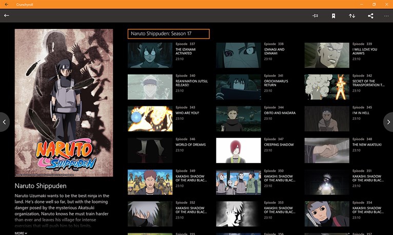 Crunchyroll (โปรแกรมดูแอนิเมชันญี่ปุ่น ศูนย์รวมการ์ตูนชื่อดังแบบถูกลิขสิทธิ์ออนไลน์) : สำหรับโปรแกรมนี้มีชื่อว่า โปรแกรม Crunchyroll เป็นโปรแกรมสตรีมวิดีโอแอนิเมชันญี่ปุ่น หรือ อะนิเมะ ที่ได้รวมอะนิเมะชื่อดังต่างๆ ไว้ในที่ด้วยและที่สำคัญแพลตฟอร์มนี้ได้รับลิขสิทธิ์การฉายอย่างเป็นทางการ รายชื่ออะนิเมะที่ใครหลายๆ คนรู้จักกัน ก็คงจะเป็น Dragon Ball, Sword Art Online, Attack on Titan, JoJo's Bizarre Adventure, Hunter x Hunter และอื่นๆ อีกมากมาย เปิดประสบการณ์ให้ผู้ชมสามารถรับชมได้ผ่านทางโปรแกรมบน Windows 10 เครื่อง Xbox One และมือถือ