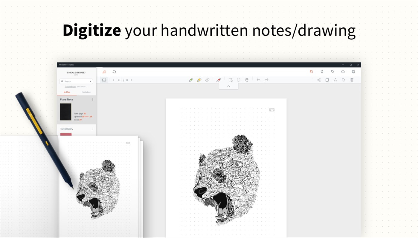 Moleskine Notes (โปรแกรม Moleskine Notes จดเขียนบันทึกปากกาอัจฉริยะ) : สำหรับโปรแกรมนี้มีชื่อว่า โปรแกรม Moleskine Notes เป็นโปรแกรมสำหรับแปลงข้อมูลจดบันทึกจากปากกาให้กลายเป็นรูปแบบดิจิทัล (Digitized Writing and Drawing) จากบริษัทออกแบบสมุดชื่อดัง รองรับการเปลี่ยนภาพวาด ลายมือจดบันทึกงาน สิ่งต่างๆ ที่จดลงไปด้วยปากกาอัจฉริยะและสมุดที่ออกแบบมาพิเศษจาก Moleskine บันทึกลงบนอุปกรณ์ต่างๆ มือถือสมาร์ทโฟน iOS Android หรือ คอมพิวเตอร์ Windows ได้ง่ายๆ จดบันทึก ค้นหา แก้ไข ไอเดียของคุณ ได้ทุกที่ ทุกเวลา ไม่มีวันลืม