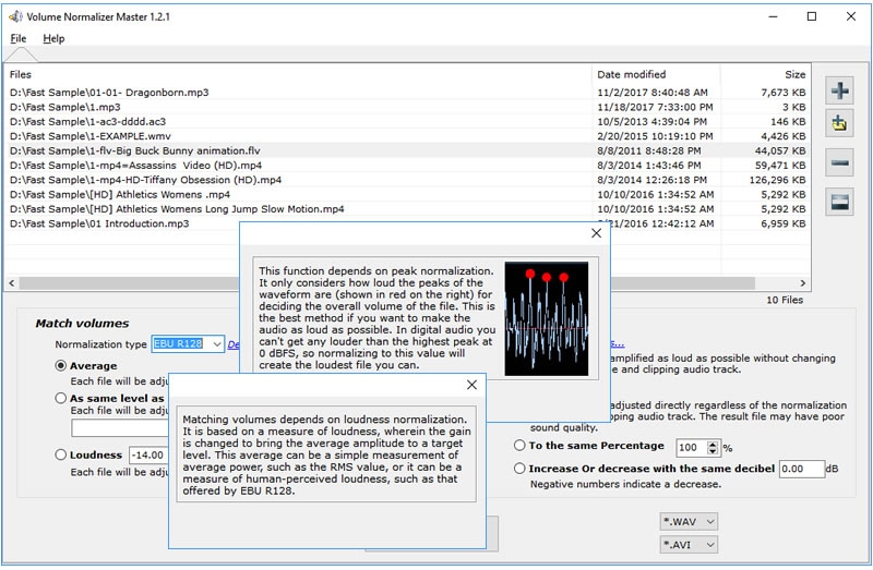 Volume Normalizer Master (โปรแกรมปรับระดับเสียง ปรับความดังเสียงให้เท่ากัน) : สำหรับโปรแกรมนี้มีชื่อว่า โปรแกรม Volume Normalizer Master เป็นโปรแกรมสำหรับปรับระดับความดังเสียง (Modify Volume) ที่ออกแบบมาเพื่อปรับแต่ง แก้ไขระดับเสียงของไฟล์วิดีโอและไฟล์เสียง ได้ หากผู้ใช้งานประสบปัญหาเปิดเพลง หรือ วิดีโอ แล้วเสียงที่ออกมาเบาและดังไม่เท่ากัน บางไฟล์มีเสียงดังเกินไป บางไฟล์มีเสียงเบาจนไม่ได้ยิน ต้องคอยปรับระดับเสียงเองตลอด ต่อไปนี้สามารถใช้โปรแกรมนี้ในการปรับแต่งระดับเสียงได้ง่าย ๆ ด้วยมาตรฐานระดับเสียง EBU R128