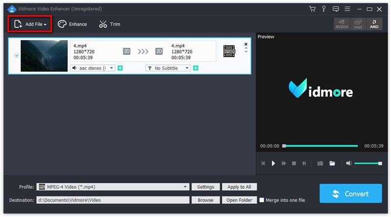 สำหรับการใช้งาน โปรแกรมปรับคุณภาพวิดีโอ Vidmore Video Enhancer ด้วยเครื่องมือที่ชาญฉลาด หากคุณมีไฟล์วิดีโอที่ต้องการจะแก้ไขปัญหาคุณภาพ ไม่ว่าจะภาพไม่ชัด ความละเอียดต่ำ ภาพแตก เบลอ สั่นไหว สามารถนำเข้าไฟล์วิดีโอมาเพื่อปรับปรุงด้วยเครื่องมือในโปรแกรมนี้ได้ เลือกเมนู Enchance เพื่อปรับแต่งคุณภาพวิดีโอ ทั้ง Upscale / Optimize / Remove Noise / Reduce Shaking ต่างๆ และกด Apply เพื่อทำการบันทึกการปรับปรุงให้คุณภาพของวิดีโอดีขึ้นได้
