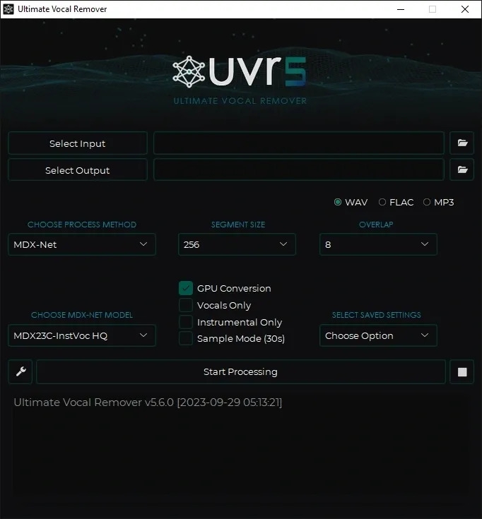 สำหรับการใช้งาน โปรแกรมตัดเสียงร้องออกจากเพลง Ultimate Vocal Remover ก็ไม่ได้ยุ่งยากซับซ้อนใด ๆ เพียงแค่เลือกไฟล์เสียง หรือไฟล์เพลง ที่ต้องการในช่อง Select Input และเลือกที่หมายปลายทาง ที่ต้องการจะให้เซฟบันทึก ในช่อง Select Output พร้อมกับเลือกค่าต่าง ๆ ที่สามารถปรับแต่งได้ตามต้องการ (เลือกได้ละเอียดมาก ๆ) อาทิ รูปแบบการประมวลผล (Process Method), ขนาดของเซกเมนต์ (Segment Size), ค่าโอเวอร์แลป (Overlap) ฯลฯ อีกมากมาย และเมื่อพร้อมแล้วให้กดที่ "ปุ่ม Start Processing" แล้วรอสักครู่ ก็เป็นอันเสร็จพิธี