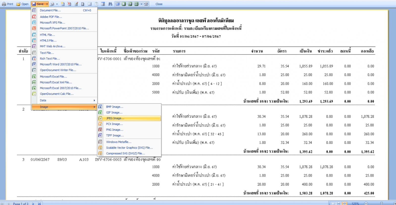- สามารถเลือกพิมพ์ใบแจ้งหนี้พร้อมกันเป็นชุดได้