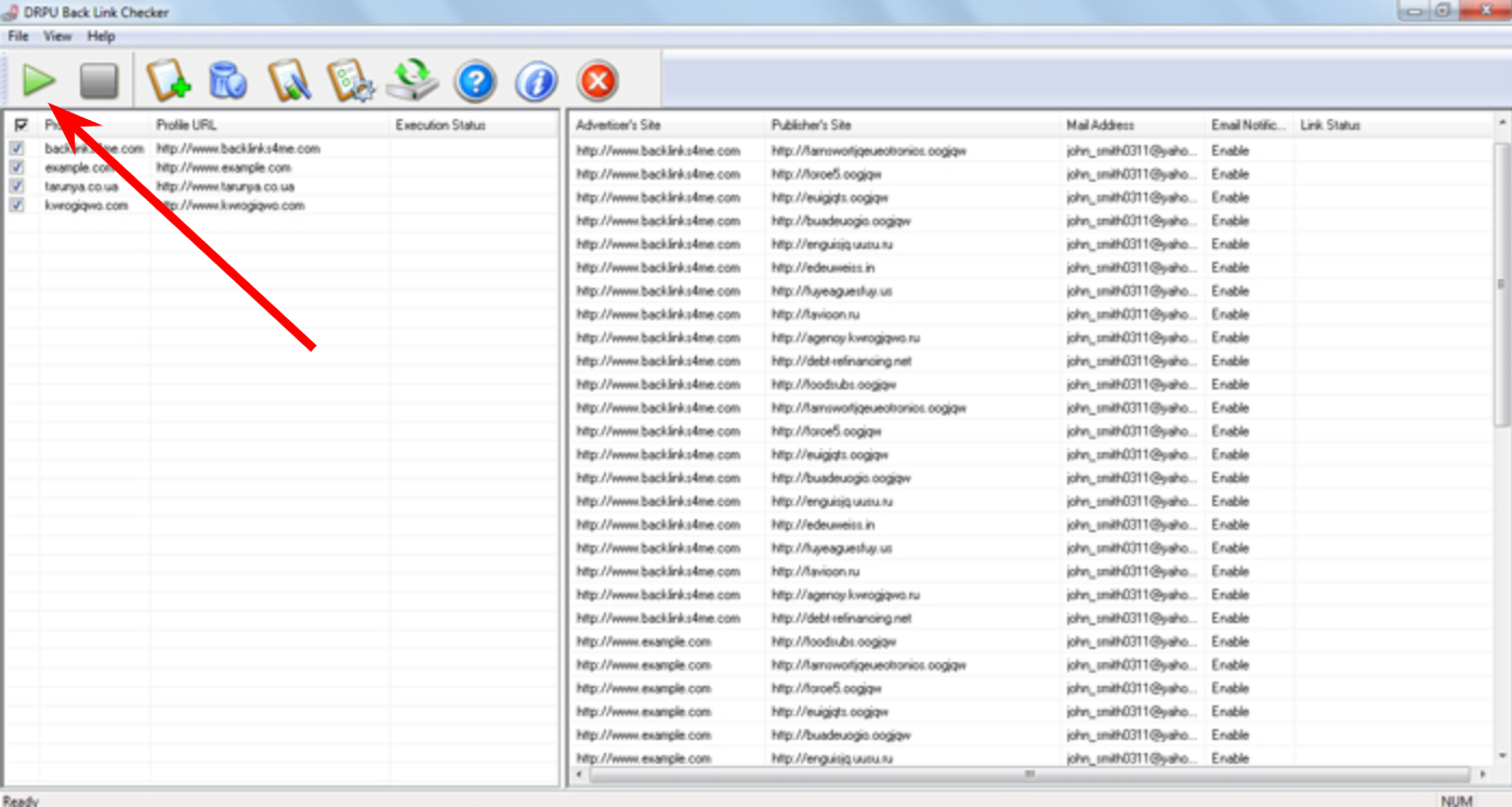 Backlink checker tool automatically save all checked information in html and text file format. Reciprocal link checker application provides complete detail of all scanned web URL and send a notification email to user where his desired link is available or unavailable.