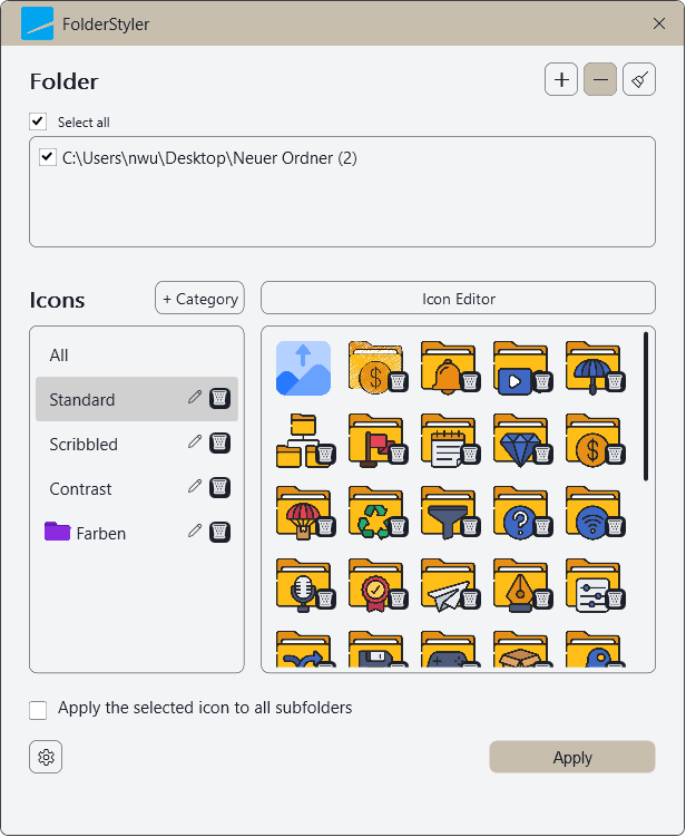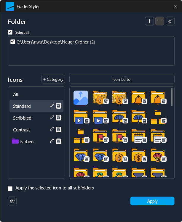 This program is called "Ashampoo Folder Styler". Folders on your Windows desktop all look the same—yellow, dull, and hard to tell apart. But you can easily change that! With Ashampoo Folder Styler, you can give your folders a custom design and style them just the way you want. Make your Windows experience more personal and organized!