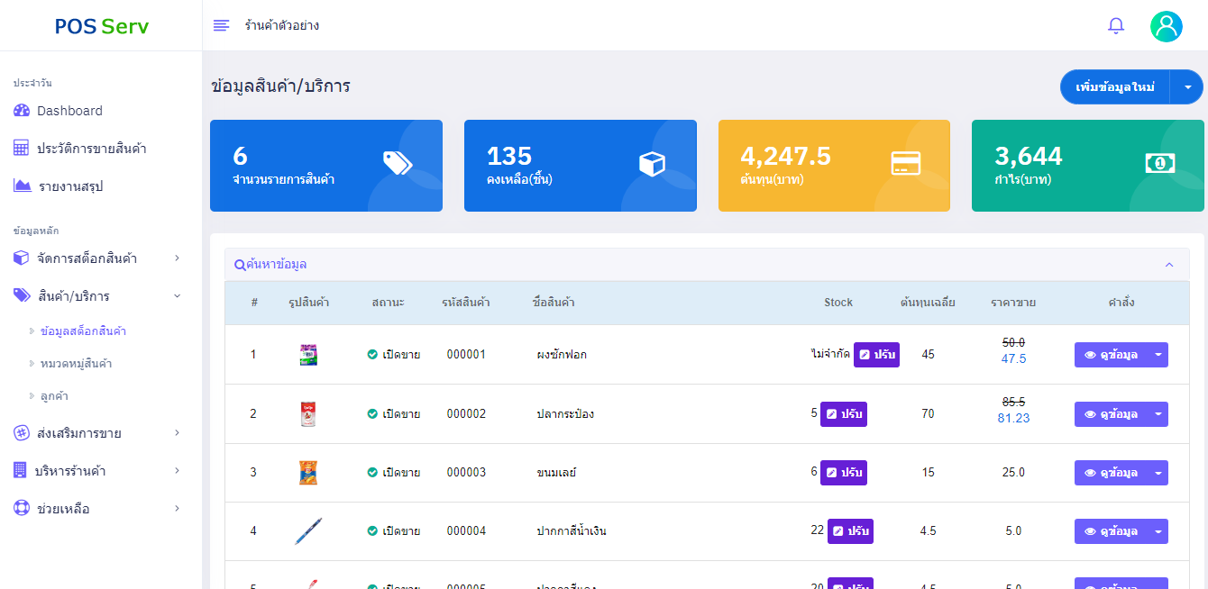 โปรแกรมบริหารร้านค้า ขายหน้าร้าน POSServ มาพร้อมระบบบริหารจัดการร้านค้าแบบครบวงจร ช่วยให้เจ้าของร้านสามารถควบคุมทุกกระบวนการได้จากจุดเดียว ไม่ว่าจะเป็นการบริหารสต๊อกสินค้าให้มีความถูกต้องแม่นยำ การสร้างโปรโมชันส่วนลดเพื่อกระตุ้นยอดขาย การดูรายงานการขายเพื่อวิเคราะห์ผลประกอบการ รวมถึงการจัดการร้านค้าในภาพรวมได้อย่างมีประสิทธิภาพ ช่วยลดภาระงานและเพิ่มความสะดวกในการบริหารธุรกิจทุกวัน