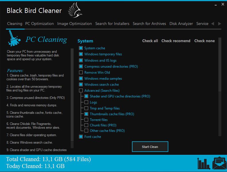 This program is called "Black Bird Cleaner" is a clean your PC from unnecessary and temporary files,