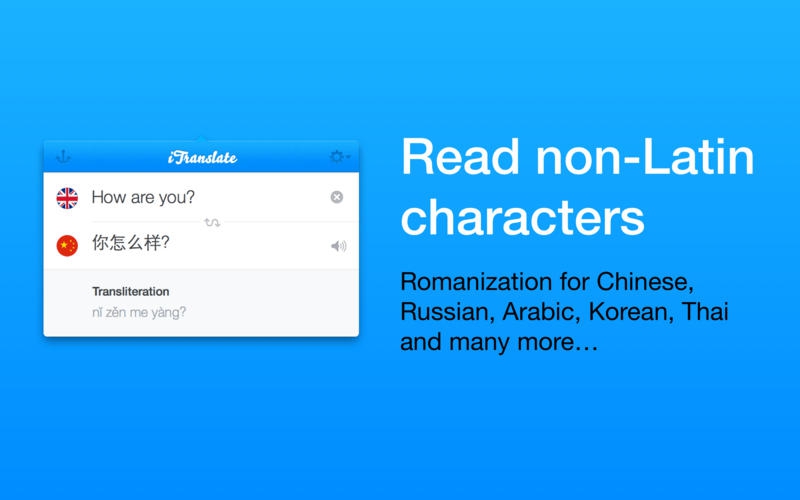 สำหรับ โปรแกรมแปลภาษา iTranslate มันสามารถรองรับภาษาต่างๆ ทั่วโลกและทำการแปลออกมาได้ถึง 90 ภาษา และที่สำคัญรองรับภาษาไทย อีกด้วย มันสามารถแปลประโยคต่างๆ นอกจากนี้ยังสามารถอ่านออกเสียง (Text to Speech) ให้เราได้ฟังสำเนียง แบบออฟไลน์ โดยที่ไม่จำเป็นต้องเชื่อมต่อกับอินเทอร์เน็ต เพราะโปรแกรมมีฐานข้อมูลคำศัพท์เก็บเอาไว้เฉพาะ