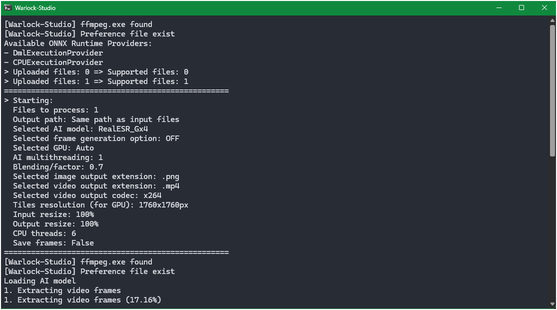 Developed as an Open-Source project, Warlock-Studio brings together several leading AI models into a single platform, including Real-ESRGAN, BSRGAN, GFPGAN, and RIFE. Users can import images or videos and apply a variety of enhancement techniques such as increasing resolution, restoring blurry or low-quality faces, removing visual noise, and interpolating frames to improve fluidity or create slow-motion effects. The application intelligently selects the best available hardware acceleration method, prioritizing CUDA (for NVIDIA GPUs), followed by DirectML, and finally falling back to CPU processing. This ensures broad device compatibility and maximizes processing speed across different systems.
