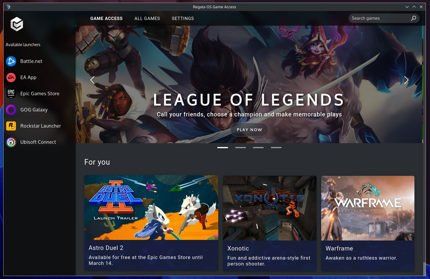 นอกจากนี้แล้วก็ยังมีเทคโนโลยี AMD FidelityFX Super Resolution (FSR) ที่ช่วยเพิ่มเฟรมเรตโดยไม่ลดคุณภาพภาพ นอกจากนี้ยังมีระบบ Regata OS Game Access ที่ช่วยให้ผู้ใช้งานสามารถเข้าถึงเกมจากแพลตฟอร์มต่าง ๆ เช่น Steam (ผ่าน Steam Play / Proton), Origin, Battle.net, Ubisoft Connect และ Epic Games Store ได้จากระบบเดียว