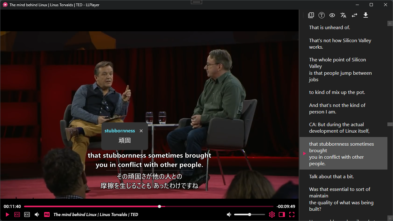 อีกหนึ่งฟีเจอร์ที่โดดเด่นคือ การคลิกที่คำในคำบรรยายเพื่อดูความหมายทันทีผ่านหน้าต่างป๊อปอัป หรือค้นหาคำผ่านเว็บไซต์ต่าง ๆ และคัดลอกไปยังคลิปบอร์ดได้ รวมถึงมีแถบด้านข้างสำหรับจัดการคำบรรยายที่สามารถค้นหาแบบเพิ่มทีละคำ (Incremental Search) และดูความหมายของคำได้เช่นกัน ในปัจจุบันรองรับเฉพาะ ระบบปฏิบัติการ (OS) อย่าง วินโดวส์ (Windows)