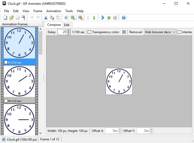 Duplication, mergers, cropping, re-sizing, rotation and frame flipping; capability to create animated GIF files using sets of BMP, JPEG, ICO, and Windows Metafiles; color palette support; .avi and .ani file export and import - that"s just a fraction of the features available in Advanced GIF Animator.