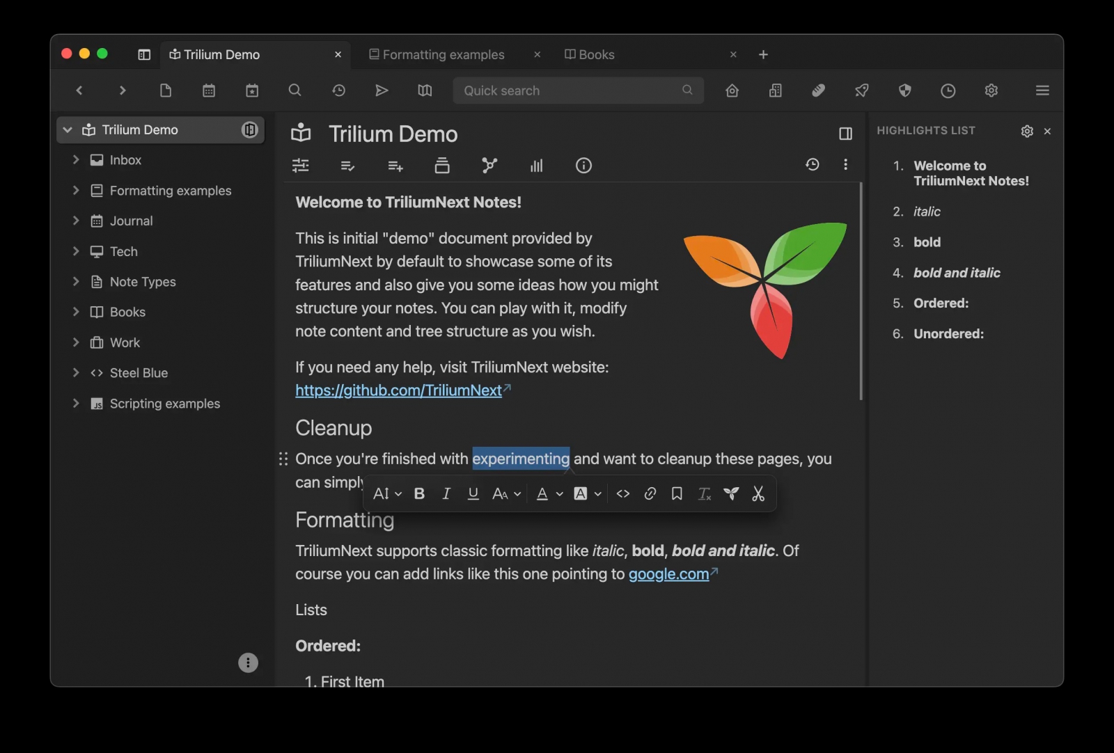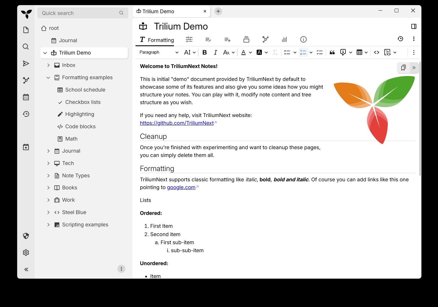 Trilium Notes is a note-taking application designed around a hierarchical structure to make organizing, managing, and retrieving your notes easier and more efficient. It is developed as an open-source project and supports multiple operating systems, including Windows, macOS, and Linux.