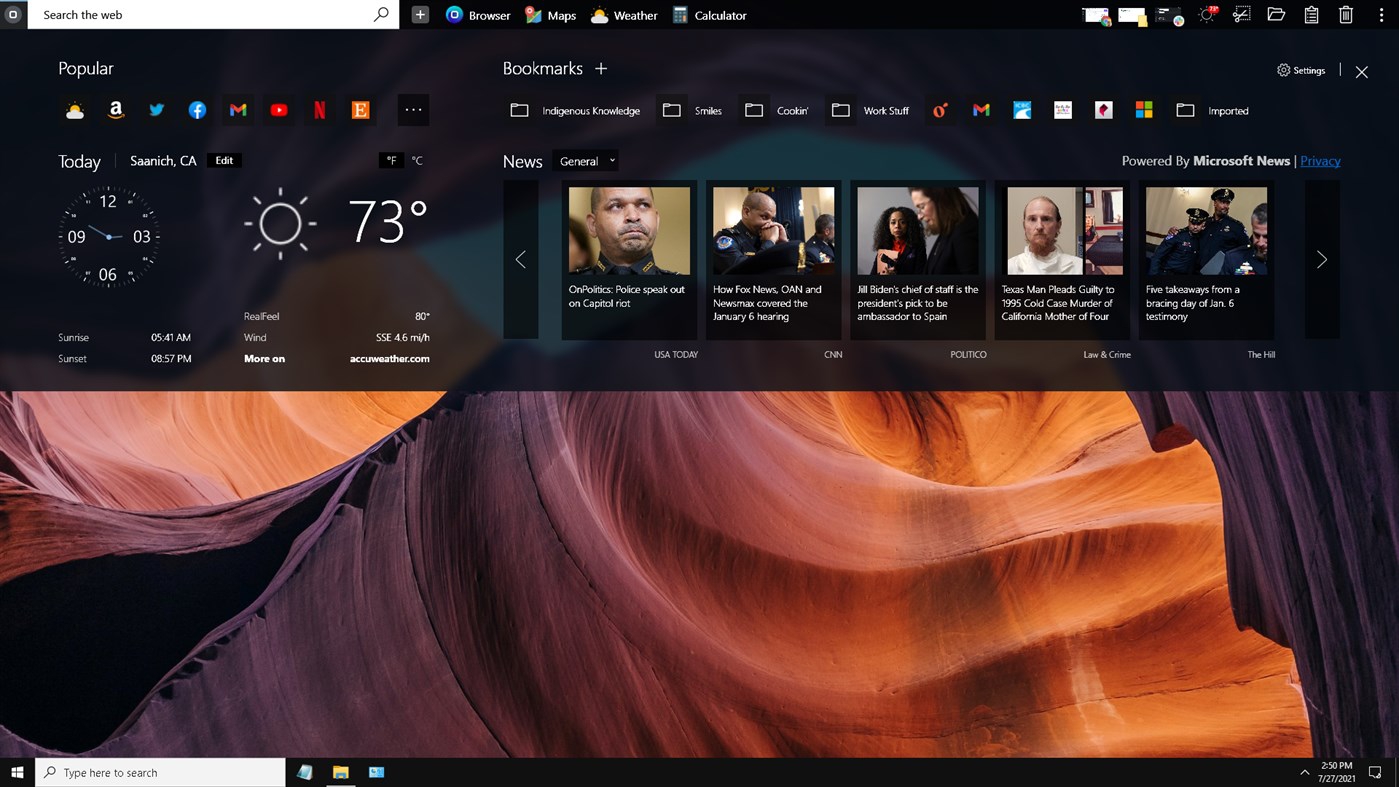 This program is called "OneLaunch". It is a desktop integration that provides a sleek new way to search the web, and access countless features and utilities all from the convenience of your desktop. Pinned to the top of your desktop, OneLaunch will get you going where you need to go, simply and efficiently.