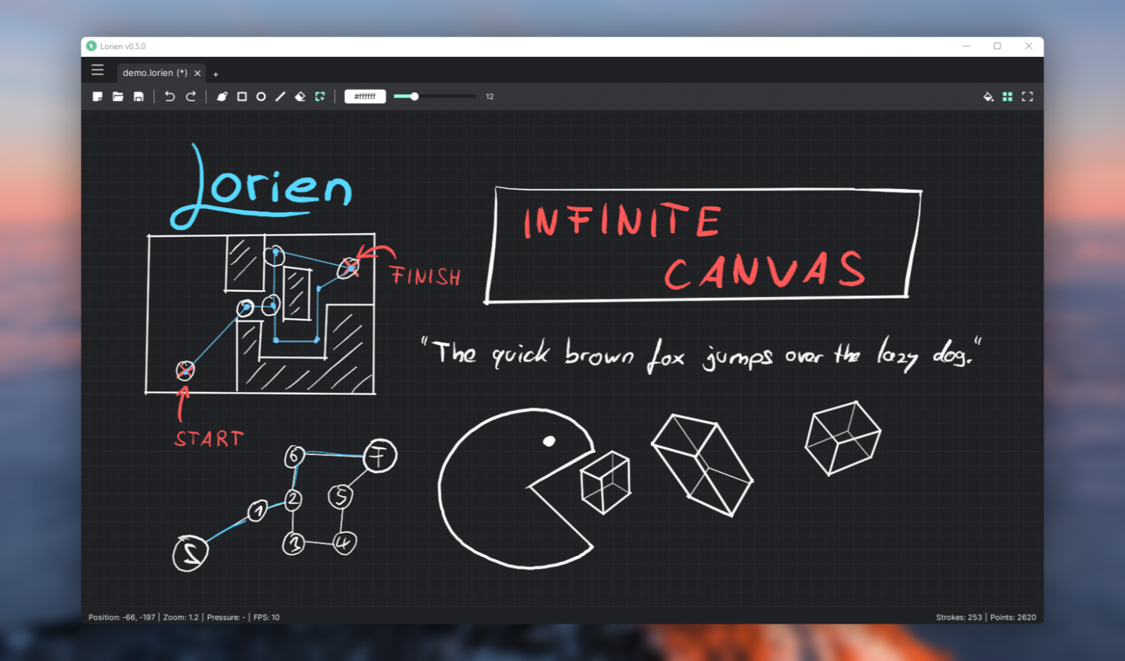 Lorien is a drawing and note-taking application that stands out for its infinite canvas workspace. The program is user-friendly, easy to learn, and optimized for high performance.