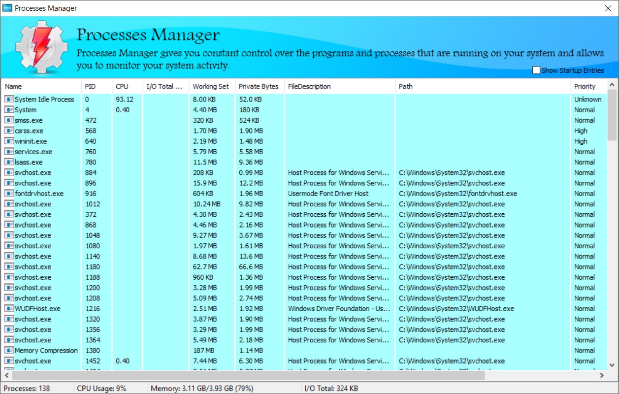 You can gain speed and security turning off or removing applications of automatic start the cause your computer is slow when it starts. Manage of Startup(automatic start applications). Startup Monitoring. Backup of the Startup. Manage of Windows scheduled tasks. Manage of Windows services. Manage of Windows process. Manage of Windows context menu.