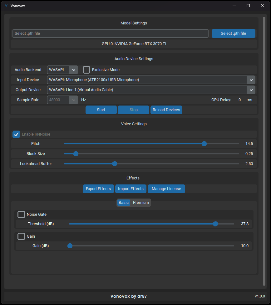 Vonovox (โปรแกรมแปลงเสียงด้วย AI สำหรับการ์ดจอ NVIDIA) : โปรแกรม Vonovox เป็นซอฟต์แวร์เปลี่ยนเสียงแบบเรียลไทม์ที่ใช้ เทคโนโลยี AI ในการทำงาน (Realtime AI Voice Converter) ซอฟต์แวร์ตัวนี้ถูกพัฒนาขึ้นมาเพื่อให้ทำงานร่วมกับ การ์ดจอ (Graphic Card) ของ NVIDIA โดยเฉพาะ สามารถใช้งานได้ตั้งแต่ตระกูล GTX 900 ขึ้นไป โดยเน้นการประมวลผลผ่าน CUDA เป็นหลัก เพื่อให้ได้การทำงานที่มี ความหน่วงต่ำ (Low Latency) และคุณภาพเสียงสูง ในการแปลงเสียงแบบเรียลไทม์