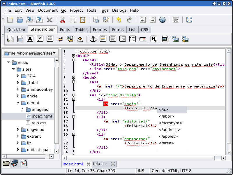 Bluefish is a powerful code editor developed specifically for programmers and web developers. It supports coding and scripting in a wide range of languages, including both programming and markup languages such as HTML, CSS, JavaScript, PHP, and Python.