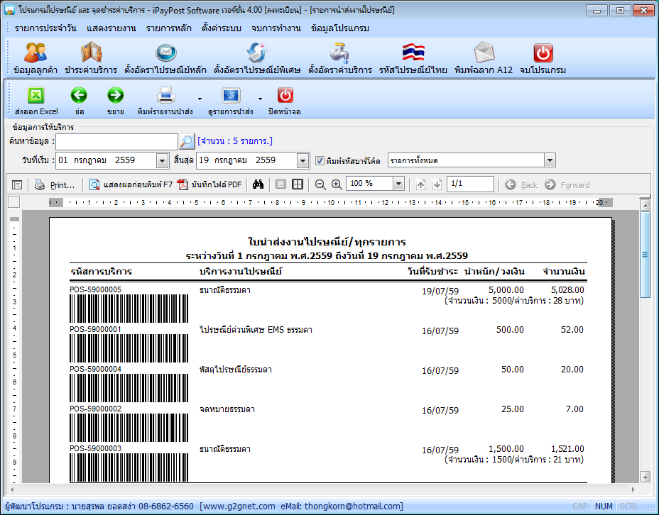โปรแกรมงานไปรษณีย์ จุดรับชำระค่าบริการ iPayPost Software