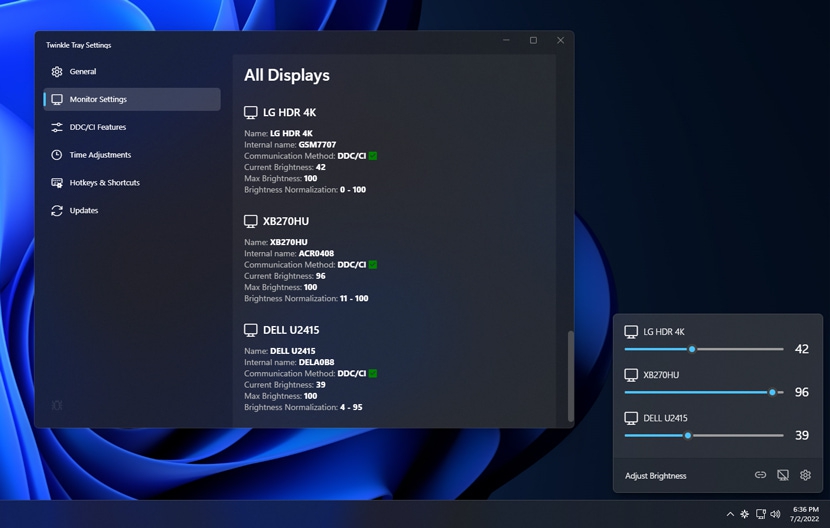 Twinkle Tray is an open-source application for Windows 10 and 11 that allows users to conveniently control the brightness of all connected monitors directly from the system tray.