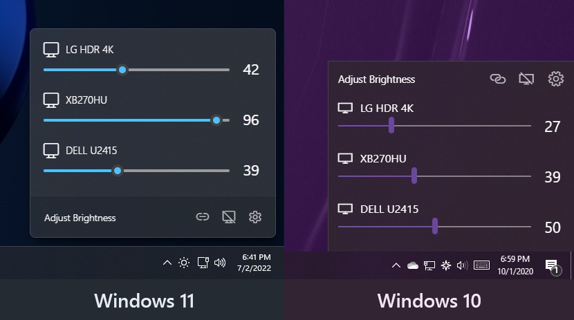Once installed, Twinkle Tray adds a shortcut to the system tray. When clicked, it opens a slider interface that lets users adjust the brightness of all supported displays instantly. The user interface (UI) is seamlessly integrated with the Windows design and can also adapt to the user's theme preferences.