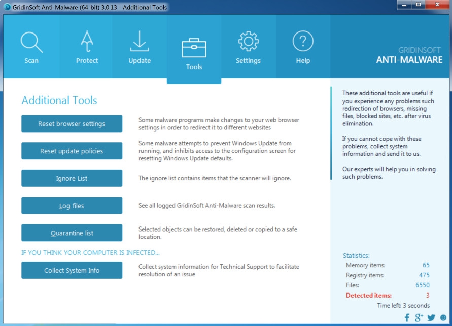 This program is called "GridinSoft Anti-Malware". It is a specialised app that is designed to target numerous different types of malware, including PUPs, spyware, adware, trojans and worms without the need to manually edit system files or registry, Trojan Killer additionally fixes system modifications that were introduced by malware and which, regretfully, are often ignored by some popular antivirus scanners.