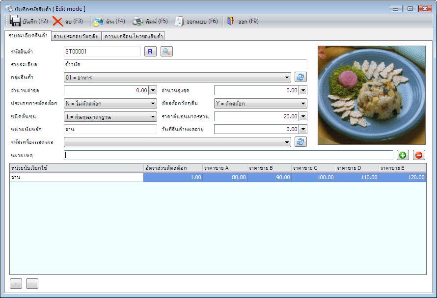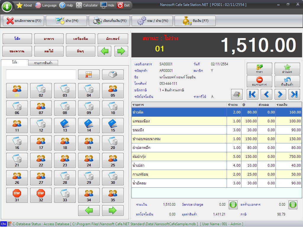 รูปตัวอย่าง Screenshot การใช้งานจริงของ โปรแกรมร้านอาหาร บริหารร้านอาหาร Nanosoft Cafe.NET