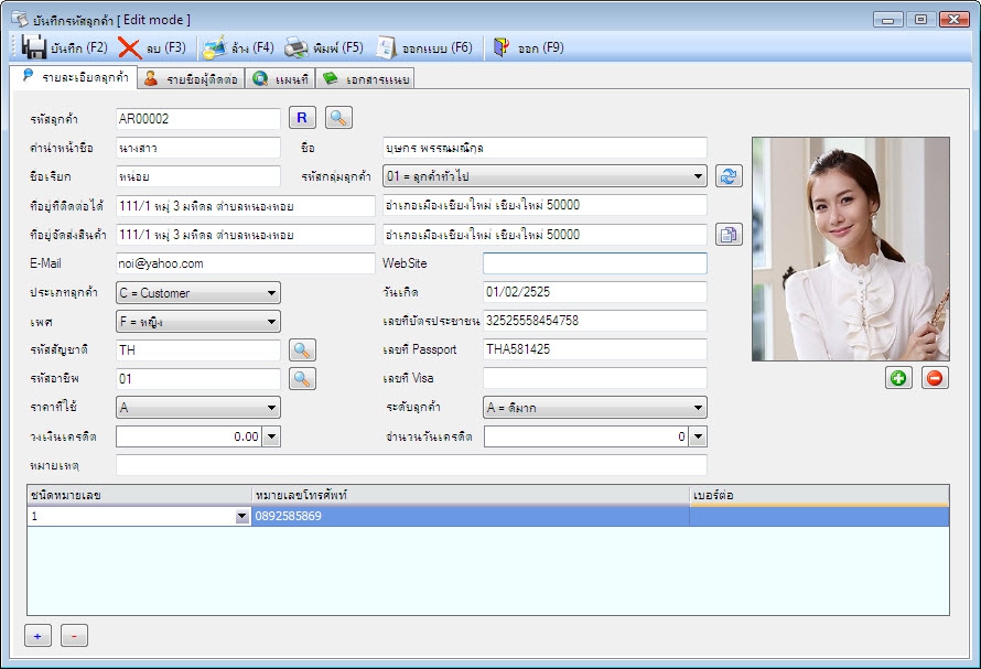 - การตั้งรหัสลูกค้าให้รองรับได้ทั้ง ลูกค้าทั่วไป หรือ ตัวแทนขาย (Agency) และ สามารถ เพิ่มรูปภาพลูกค้าได้