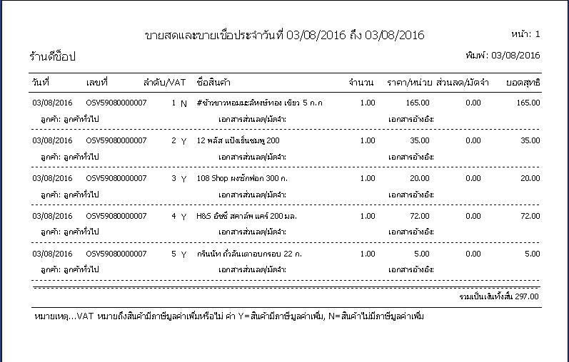 รูปตัวอย่างรายงานขายสดและขายเชื่อโปรแกรมขายหน้าร้าน DMart-Gold
