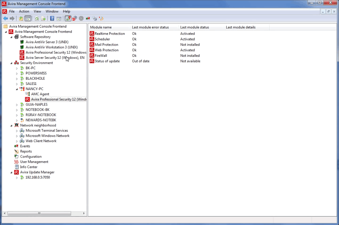 It provides administrators with advanced capabilities of centralized and remote management of AVIRA software. By means of a simple and very intuitive interface, the IT Manager is able to control, update or access antivirus protection commands at network level.