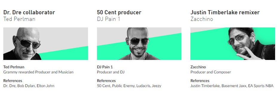 • Zacchino : เป็นโปรดิวเซอร์ (Producer) และนักแต่งเพลง ที่อยู่เบื้องหลังผลงานศิลปินระดับโลกอย่าง Justin Timberlake, Basement Jaxx และการทำงานดนตรีให้กับเกม EA Sports NBA