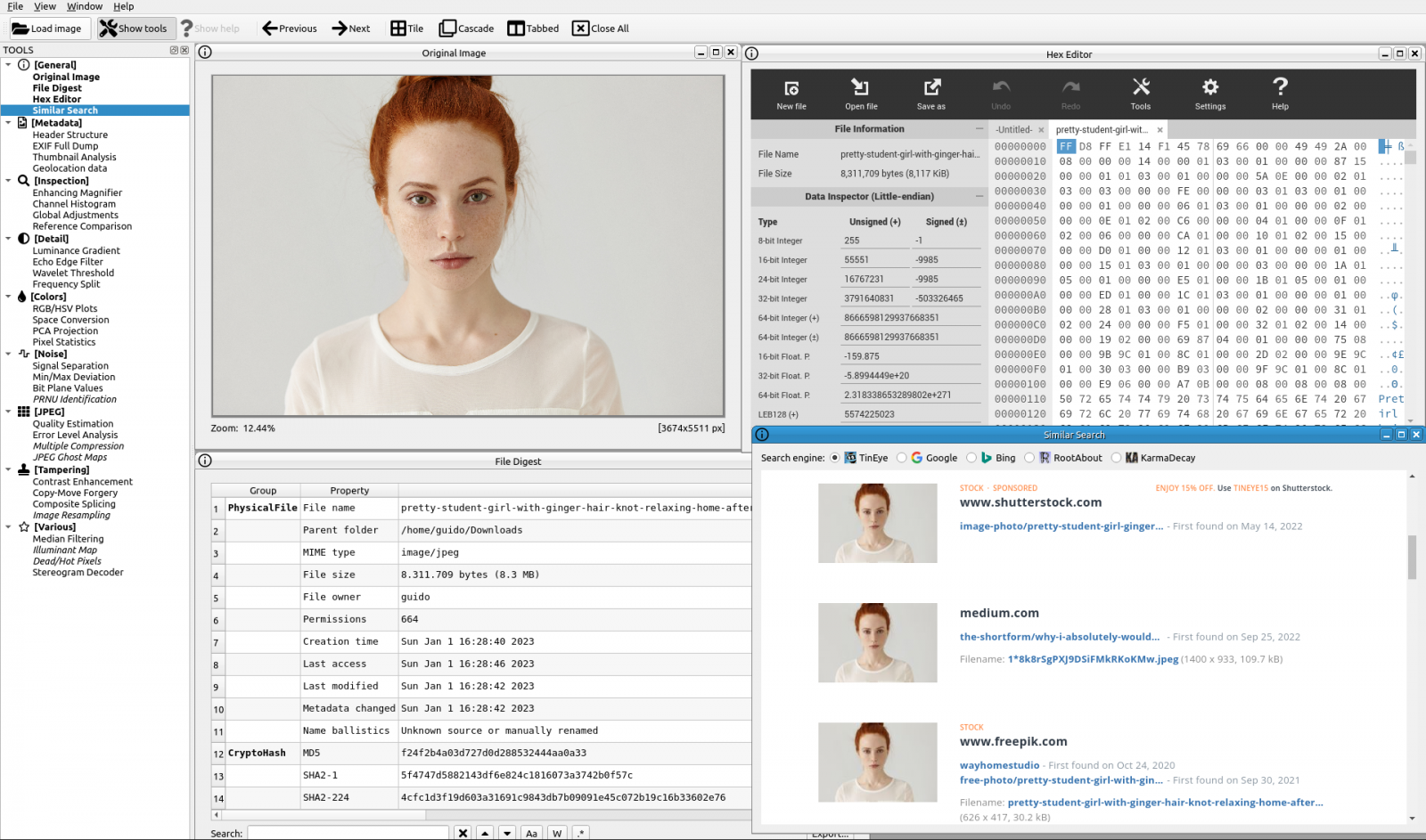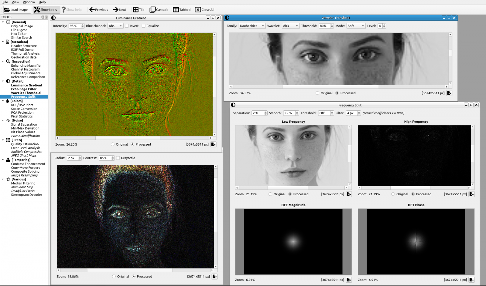 Sherloq is a software tool designed for digital image forensic analysis. It is intended to assist researchers, developers, and anyone interested in image verification. However, it is not an automated system that can definitively determine whether an image has been tampered with. Instead, it provides an interactive environment that allows users to explore, analyze, and learn from images on their own.