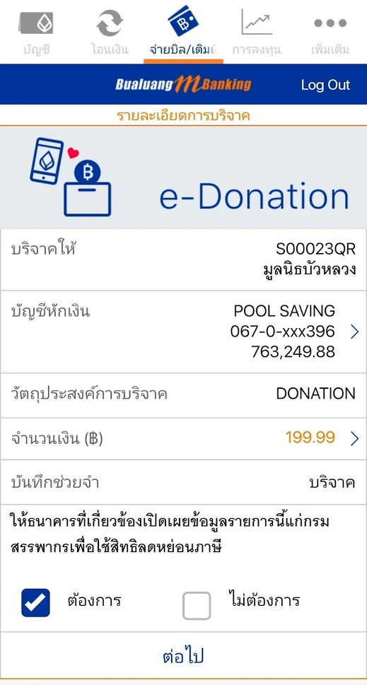 รูปตัวอย่าง Screenshot การใช้งานจริงของ App ธนาคารกรุงเทพ Bualuang mBanking