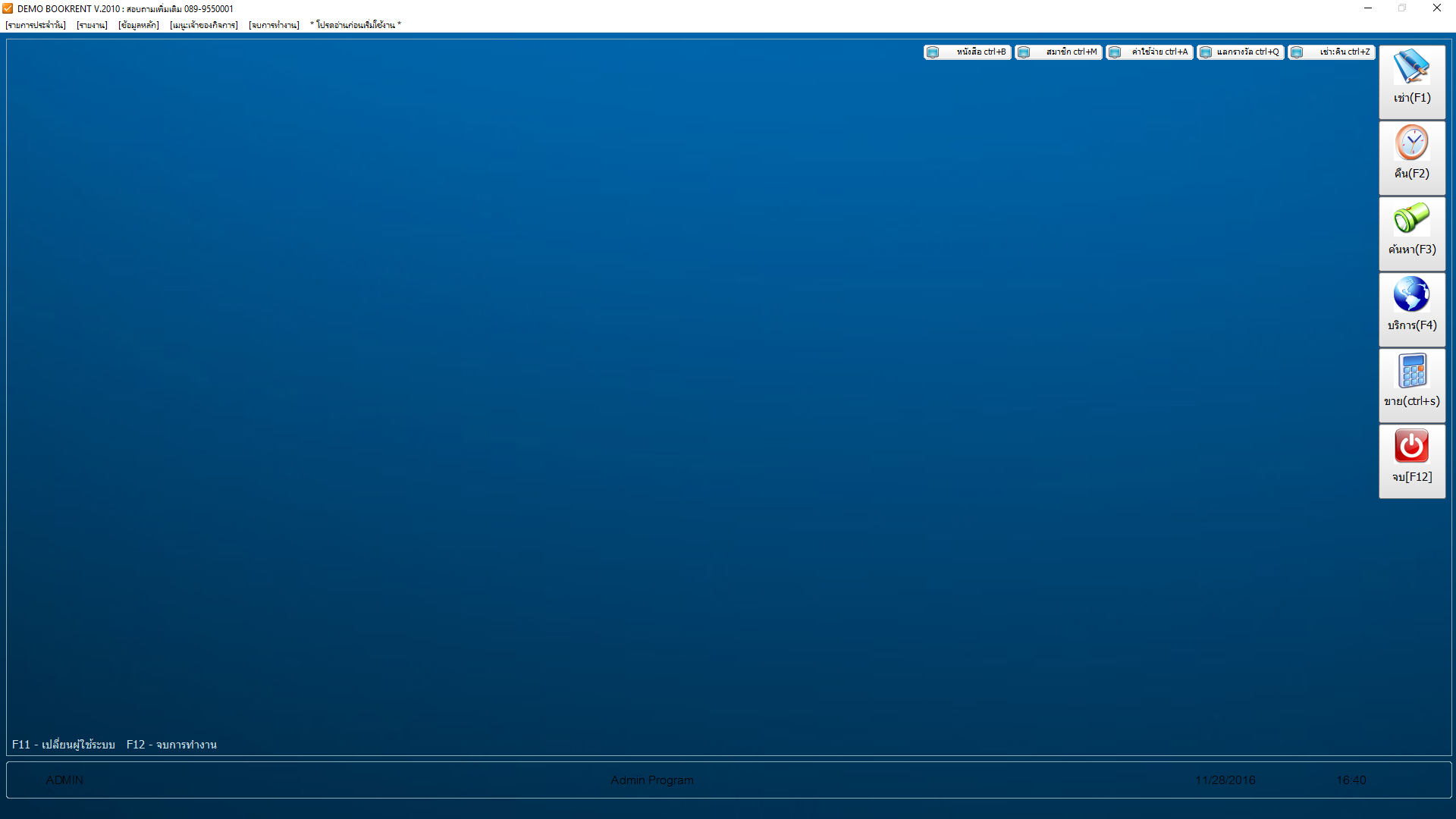 BKRent Bookrent (โปรแกรม BKRent Bookrent บริหารจัดการร้านเช่าหนังสือ) : สำหรับโปรแกรมนี้มีชื่อว่า โปรแกรม BKRent Bookrent มันเป็นโปรแกรมที่จะช่วยให้คุณสามารถจัดการร้านเช่าหนังสือได้อย่างมีประสิทธิภาพมากยิ่งขึ้น เนื่องจากตัวโปรแกรมมีระบบรองรับการใช้งานมากมาย อาทิ ระบบดูยอดจำนวนเงินทั้งหมดที่สมาชิกจ่ายค่าเช่าหนังสือ ระบบการจัดประเภทหนังสือ (โปรแกรมตั้งค่าพื้นฐานไว้ 30 กลุ่ม และสามารถเพิ่มได้) ระบบรายงานการวิเคราะห์ เป็นต้น