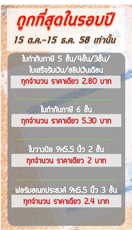กระดาษต่อเนื่องใบกำกับภาษี ลดราคา 15 ต.ค.-15 ธ.ค. นี้เท่านั้น
